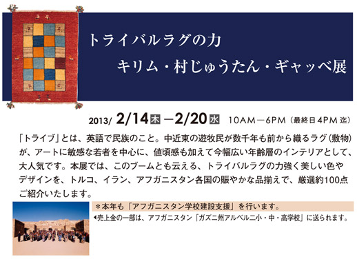 トライバルの力 キリム・村じゅうたん・ギャッベ展 2013/2/14(木)~2/20(水)10AM~6PM(最終日4PM)
