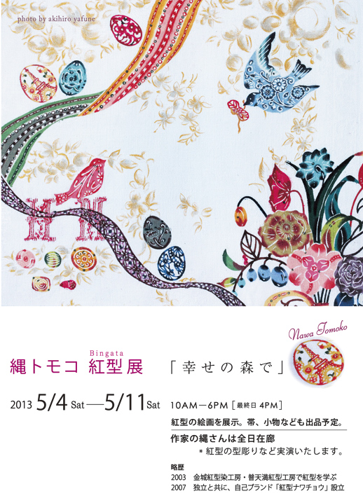 縄トモコ 紅型展「幸せの森で」 2013/5/4(土)~5/11(土)10PM~6PM(最終日4PM)