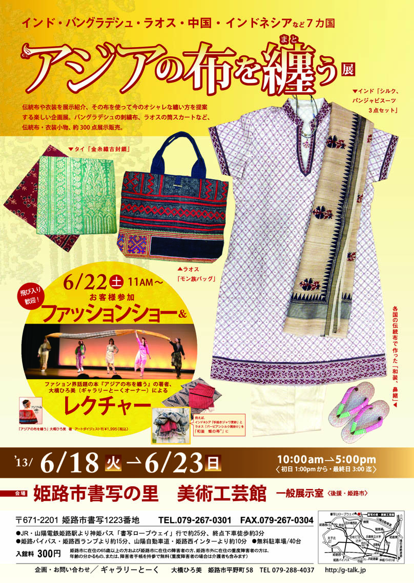アジアの布を纏う展 2013/6/18(火)~6/23(日)10AM~5PM(初日1PMから・最終日3PMまで)