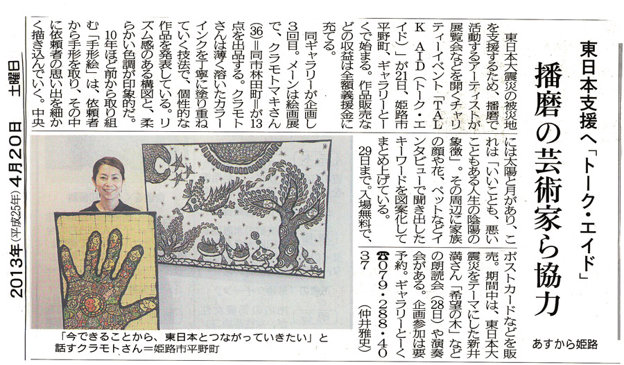 ‘13.4.20(土) 神戸新聞 トークエイド クラモトマキ絵画記事