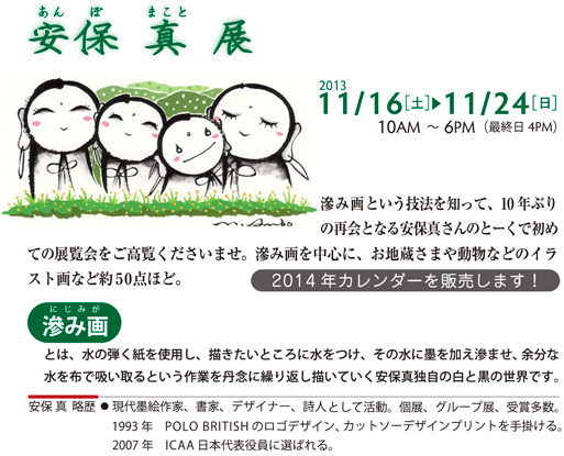 安保 真 展 2013/11/16(土)~11/24(日) 10AM~6PM(最終日4PM)