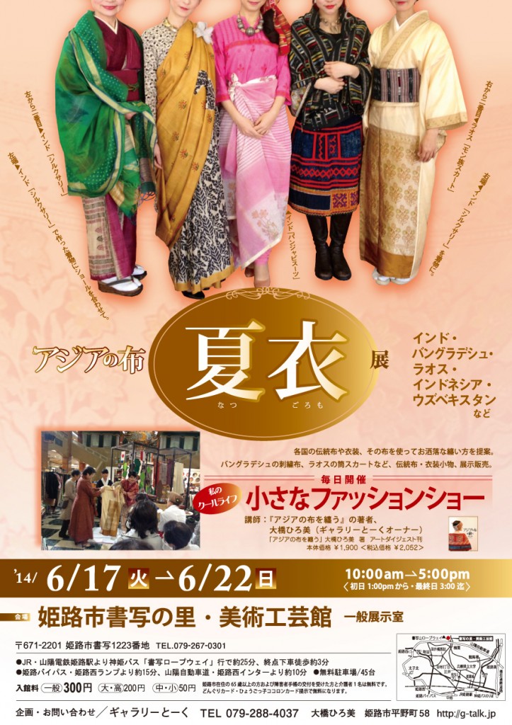 アジアの布 夏衣(なつごろも)展 姫路市書写の里・美術工芸館 2014/6/17(火)~6/22(日) 10AM~5PM(初日1PMから・最終日3PMまで)