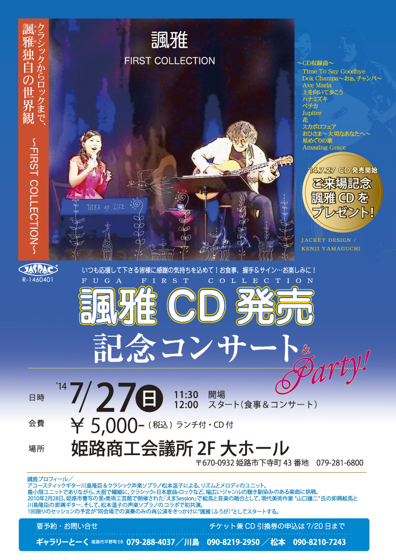 諷雅CD発売記念コンサート 2014/7/27(日)12時~ 姫路商工会議所2F大ホール 会費5000円(CD・食事付)