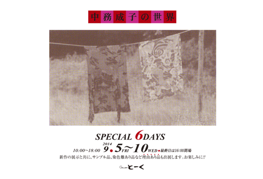 中務成子の世界 2014/9/5(金)~9/10(水)10AM~6PM(最終日4PM)