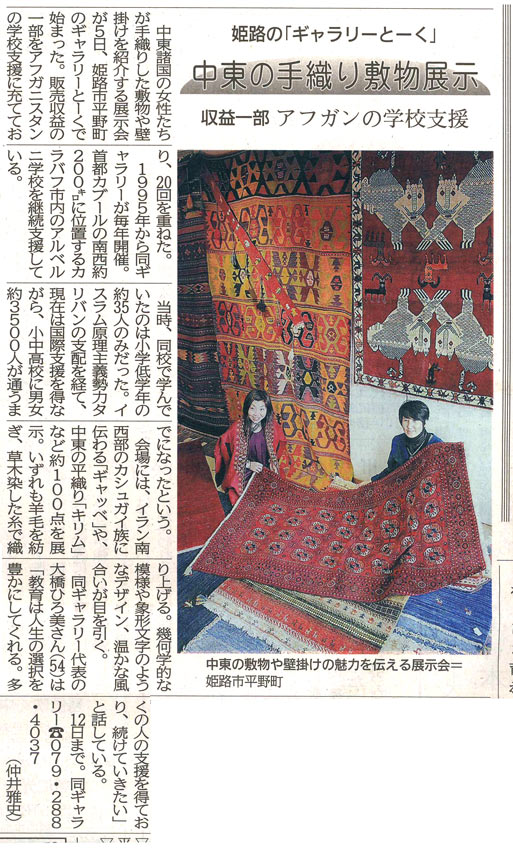 ‘14.12.6 神戸新聞 朝刊 姫路版 第20回アフガニスタン学校支援展記事