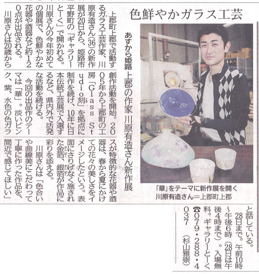 2014.3.19(木) 神戸新聞 朝刊姫路版 川原有造ガラス展記事