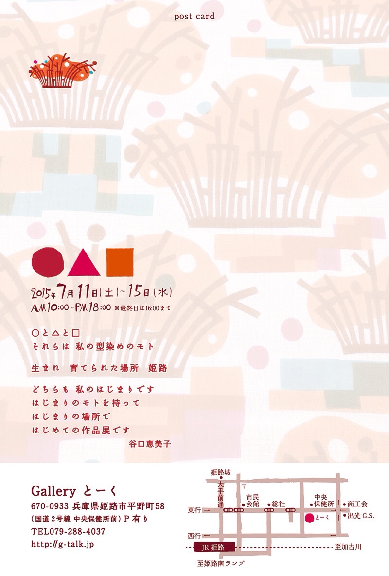 ○△□ 谷口恵美子 個展 2015/7/11(土)~7/15(水)10AM~6PM(最終日4PM迄)