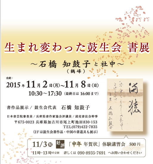生まれ変わった鼓生会 石橋知鼓子と社中 2015/11/2(月)~11/8(日)10:30~17:30(最終日4PM迄)