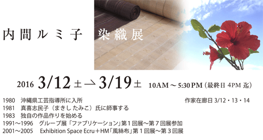 内間ルミ子 染織展 2016/3/12(土)~3/19(土) 10AM~5:30PM(最終日4PM)