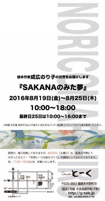 成広のり子展 SAKANA 2016/8/19(金)~8/25(木) 10AM~6PM(最終日4PMまで)