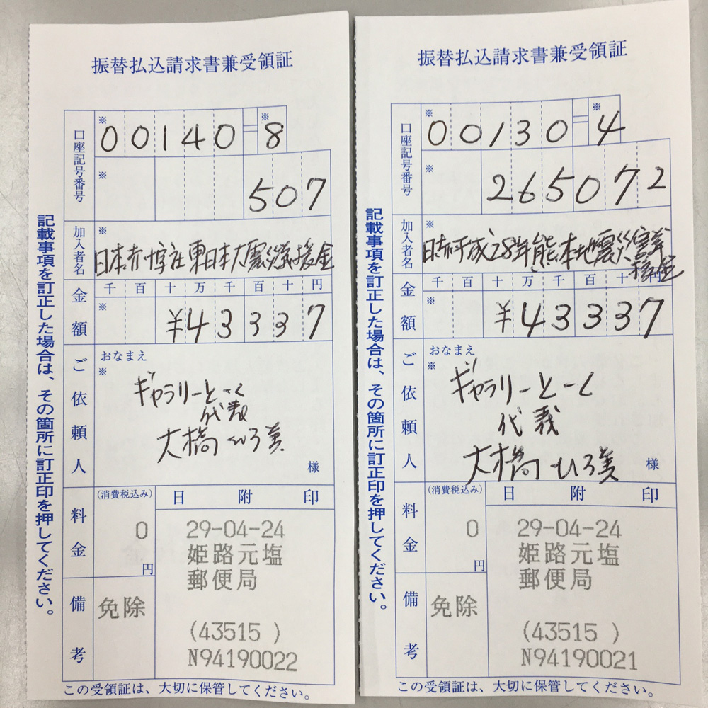 日本赤十字社を通じて、 被災地に届けさせていただきました。 この場をお借りしてお礼を申し上げます。 ありがとうございましたm(._.)m