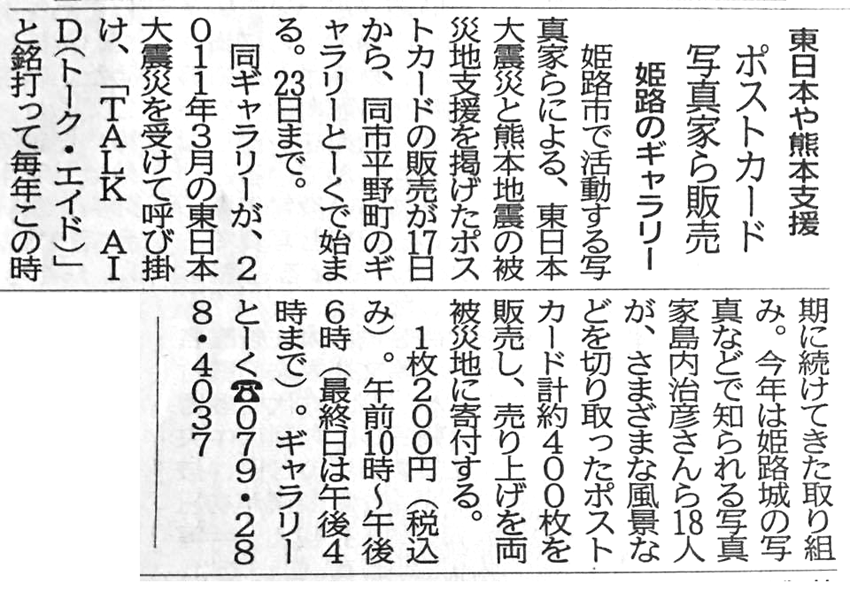 2017.4.9 神戸新聞 朝刊 TALK AID記事