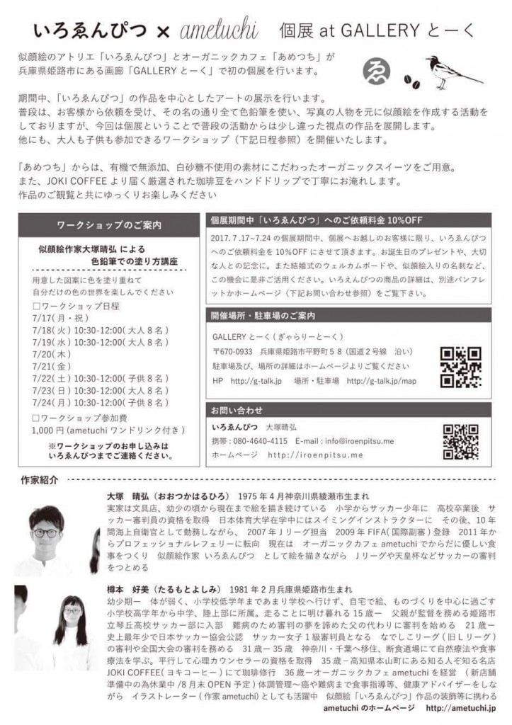 いろゑんぴつ×ametuchi個展 2017/7/17(祝)~7/24(月)10AM~5PM(最終日は3PM)