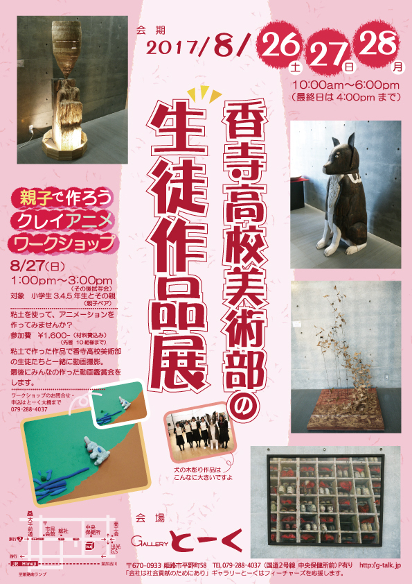 香寺高校美術部の生徒作品展 2017/8/26(土)・27(日)・28(月)10AM~6PM(最終日4PMまで)