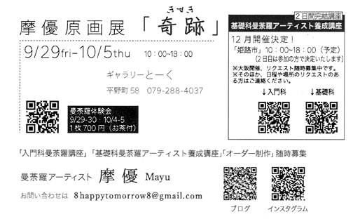 摩優原画展「奇跡」 2017/9/29(金)~10/5(火) 10AM~6PM(最終日は4PMまで)