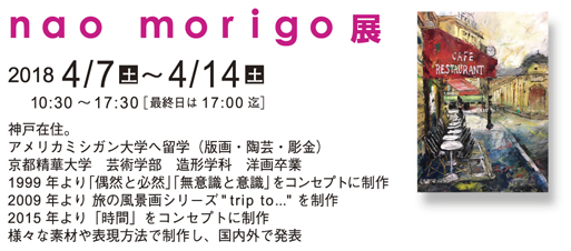 nao morigo展 2018/4/7(土)~4/14(土)10:30AM~5:30PM(最終日は5PM迄)