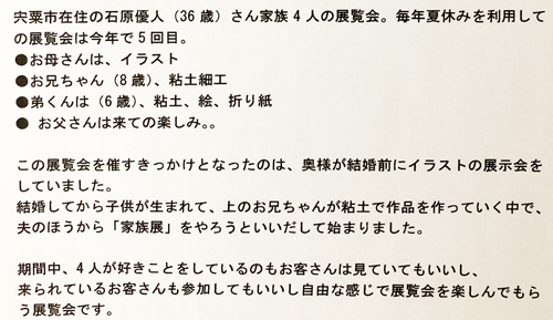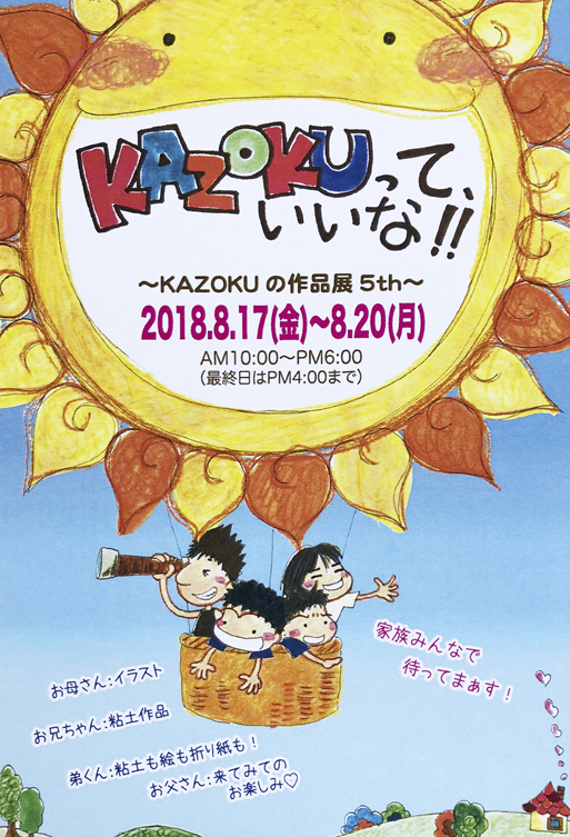 家族(KAZOKU)っていいな~KAZOKUの作品展5th~ 2018/8/17(金)~8/20(月)10AM~6PM(最終日は4PM迄)