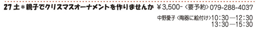 親子でクリスマスオーナメントを作りませんか 2018/10/27(土)¥3,500-