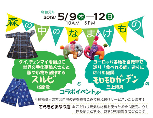 森の中のなまけもの 2019/5/9(木)~5/12(日)10:00~17:00