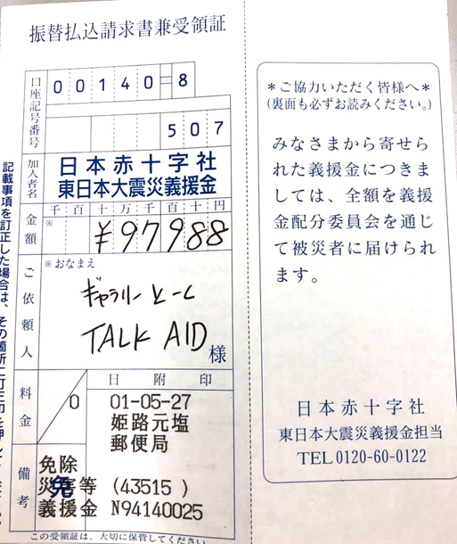 募金は全て日本赤十字を通じて、東日本大震災の被災された皆さまに届けました。