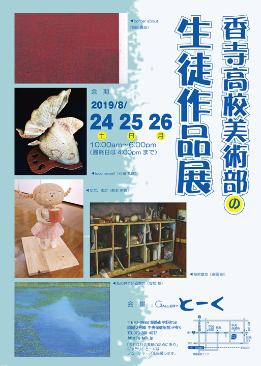 香寺高校美術部の生徒作品展 2019/8/24(土)・25(日)・26(月)10:00~18:00(最終日は16:00迄)