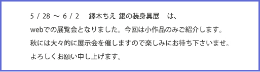 鐸木ちえ 銀の装身具展 はwebでの展覧会となります 2020/5/28(木)~6/2(火)