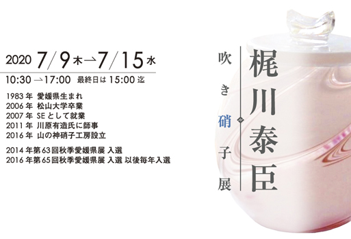 梶川泰臣 吹き硝子展 2020/7/9(木)~7/15(水)10:30~17:00(最終日15:00迄)