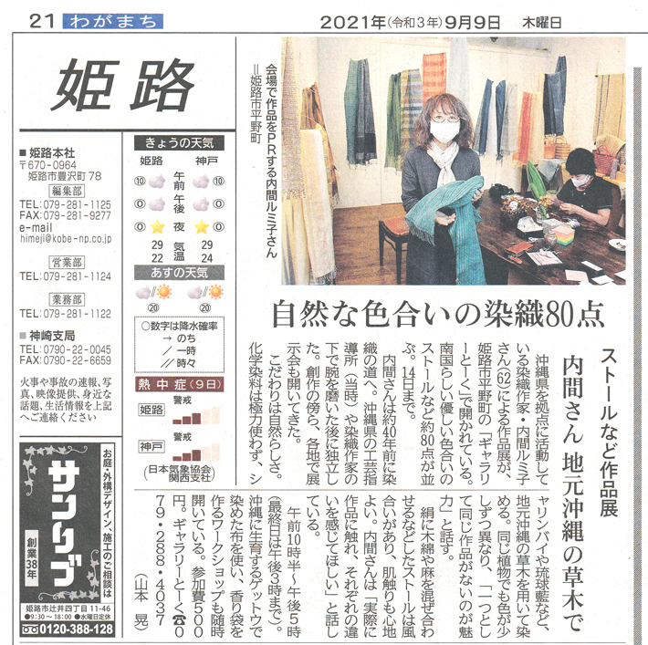 沖縄の風~内間ルミ子 染織展 2021/9/8(水)~9/14(火)10:30~17:00(最終日15:00)
