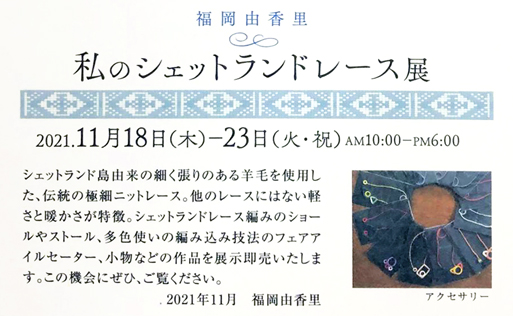 福岡由香里 私のシェットランドレース展 2021/11/18(木)~11/23(火)10:00~18:00