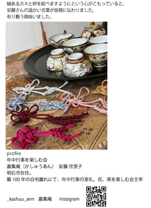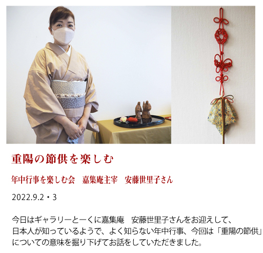 重陽の節供を楽しむ 嘉集庵 安藤世里子さん 2022/9/2(金)・3(土)