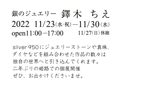 鐸木ちえ 2022/11/23(水・祝)~11/30(水)<27(日)は休廊> 11:00~17:00