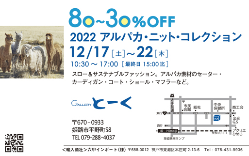 2022アルパカ・ニット・コレクション 2022/12/17(土)~12/22(木)10:30~17:00(最終日15:00まで)