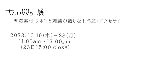trullo展 2023/10/19(木)~10/23(月)11:00~17:00(最終日15:00まで)