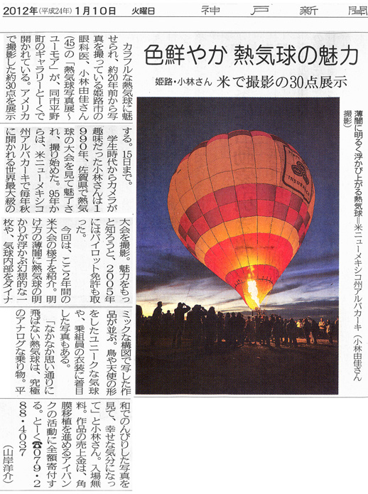‘12.1.10 神戸新聞 朝刊 小林由佳の熱気球写真展 記事