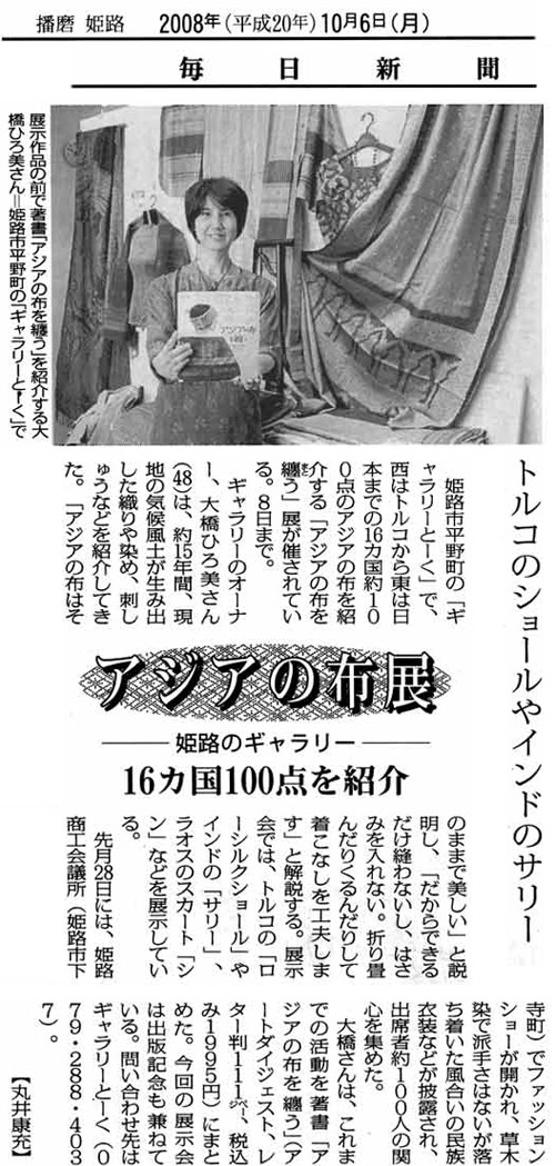 ‘08.10.6 毎日新聞 朝刊 播磨姫路版 出版記念展記事