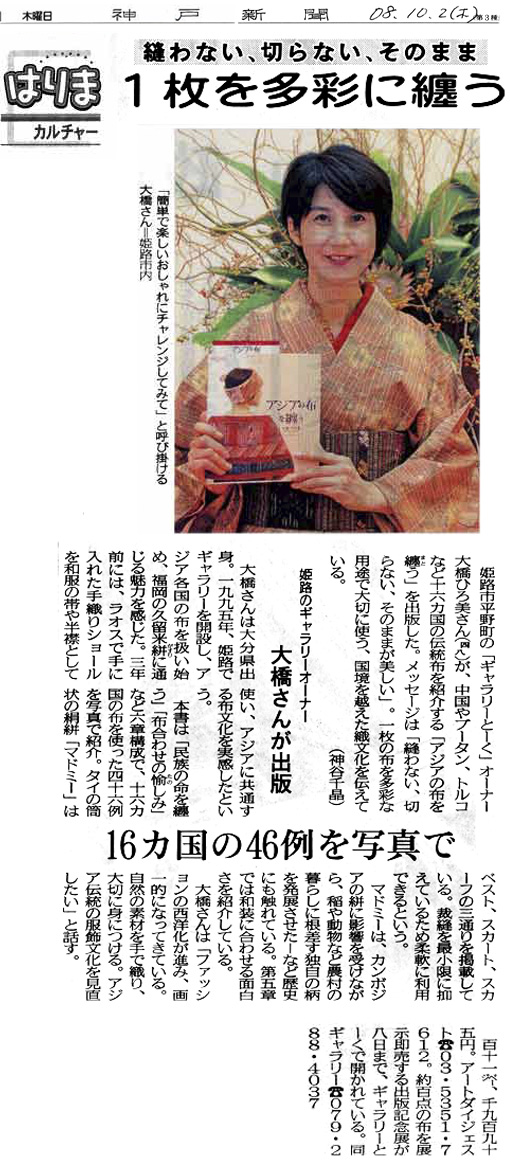 ‘08.10.2 神戸新聞 朝刊 著書 記事