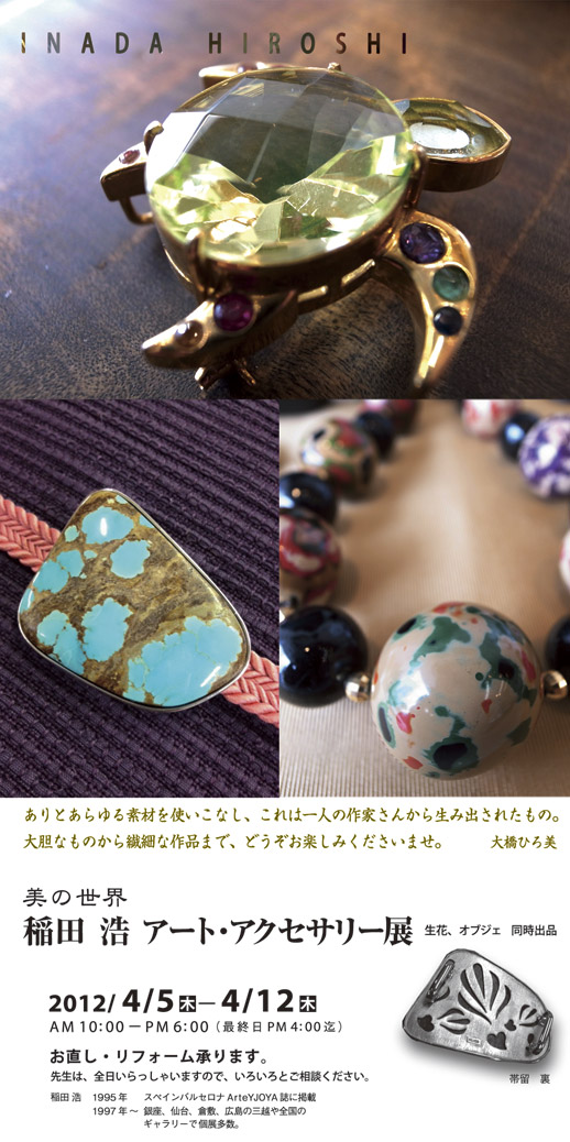 稲田浩アートアクセサリー展 2012/4/5(木)~4/12(木)10AM~6PM(最終日4PM)