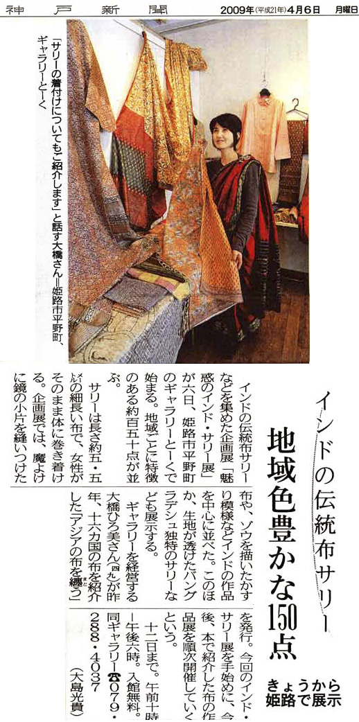 ‘09.4.6 神戸新聞 姫路版 朝刊 魅惑のインド・サリー展記事