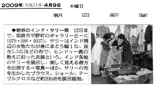 ‘09.4.9 朝日新聞 朝刊 魅惑のインドサリー展 記事