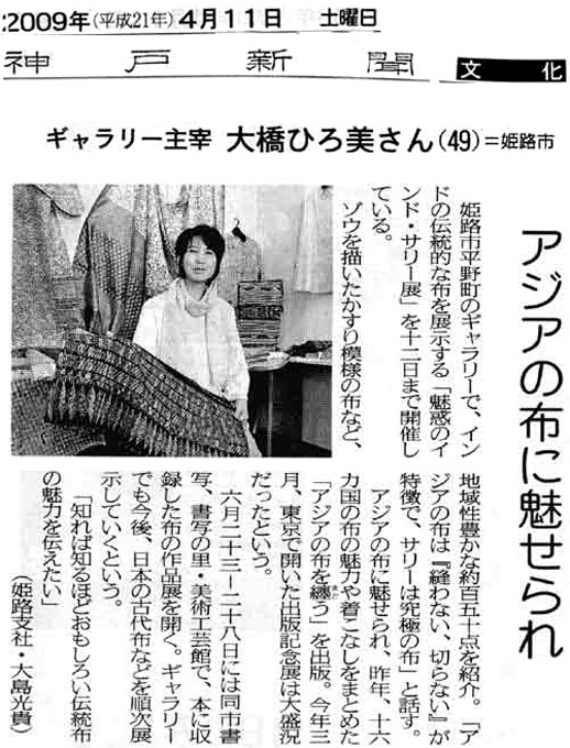 ‘09.4.11 神戸新聞 朝刊 魅惑のインドサリー展 記事