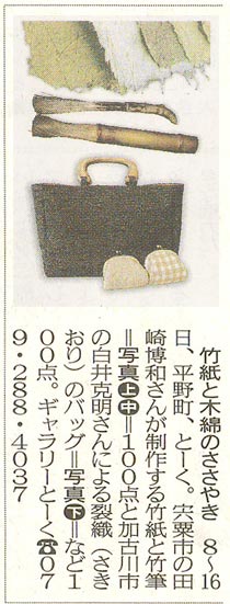 ‘12.6.7 神戸新聞 朝刊 竹紙と木綿のささやき 記事