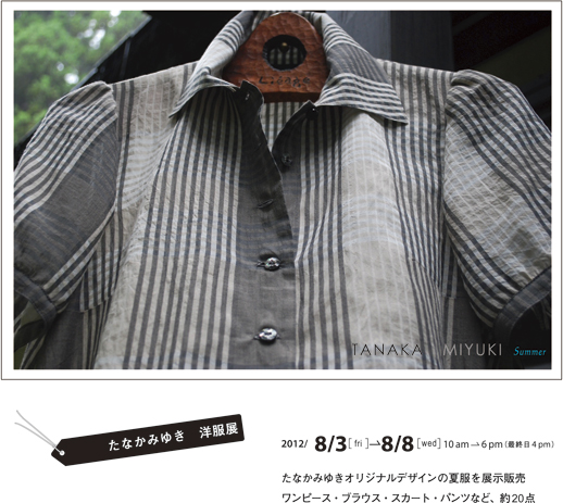 たなかみゆき 洋服展 2012/8/3(金)~8/8(水)10AM~6PM(最終日4PM)