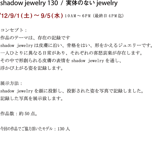 shadow jewelry 130 / 実体のないjewelry 2012/9/1(土)~9/5(水)10AM~6PM(最終日4PM)