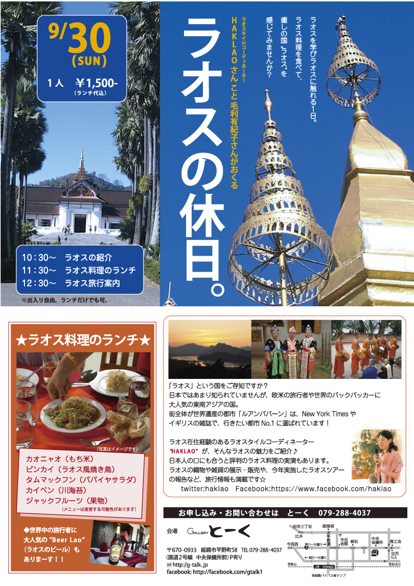 ラオスの休日 2012/9/30(日) 10:30AM~ 参加費1,500円